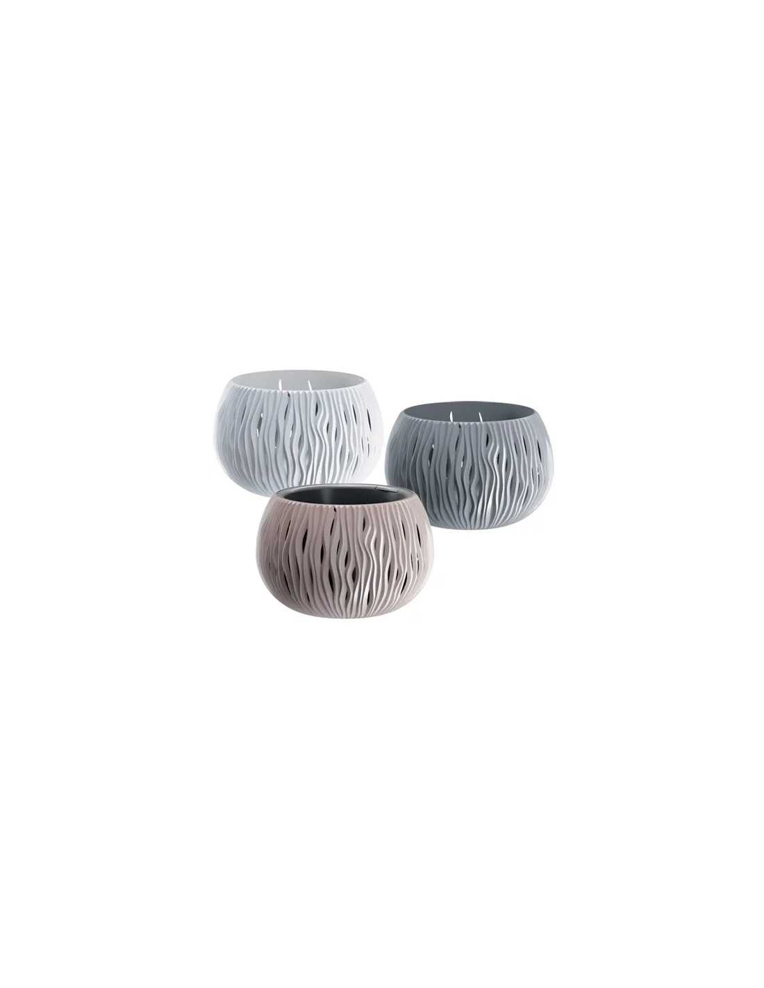 Vasi Nike DSK sono realizzati in materiale plastico robusto ad iniezione, adatti sia per interni che per esterni. Dotati di vaso interno estraibile, resistono a raggi UV e gelo. La decorazione tridimensionale forata con effetto onde li rende unici e moderni.