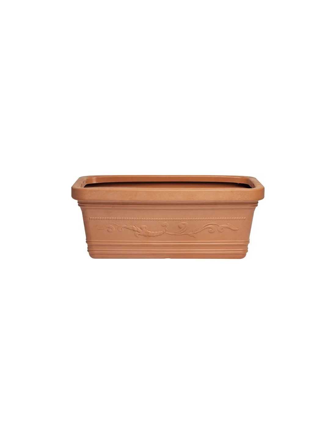 Vaso rettangolare maxi festonato in resina color terracotta opaco, con doppio bordo per un tocco elegante. Leggero e facile da spostare, resistente agli agenti atmosferici e ai raggi UV per una lunga durata nel tempo. Ideale per dare un tocco di stile al tuo spazio esterno!