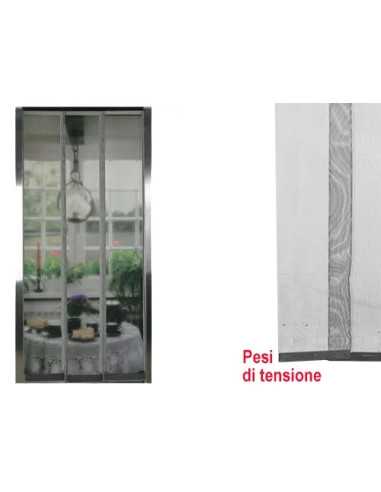 Zanzariere Stop Inset Fiber per porte con 4 teli, realizzate in fibra di vetro per una protezione efficace dagli insetti. Dotate di supporto superiore e pesi alla base per mantenere i teli sempre in tensione.