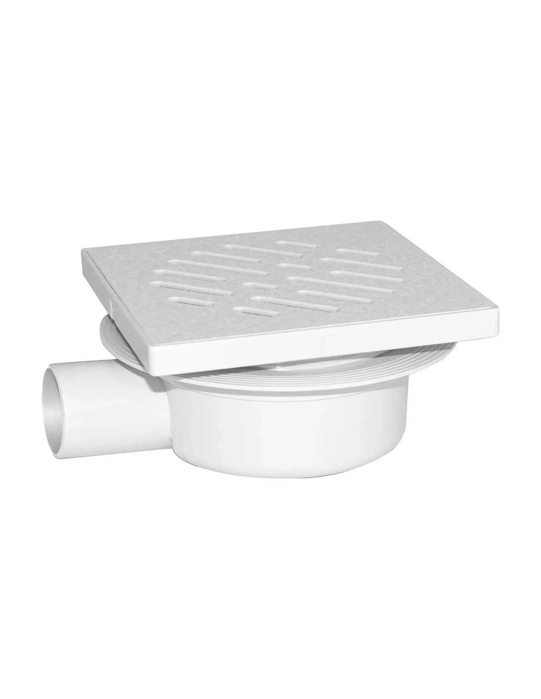 Chiusino sifonato regolabile con griglia in plastica resistente agli agenti chimici, organici ed atmosferici. Ideale per scarichi laterali, con corpo in polipropilene bianco.