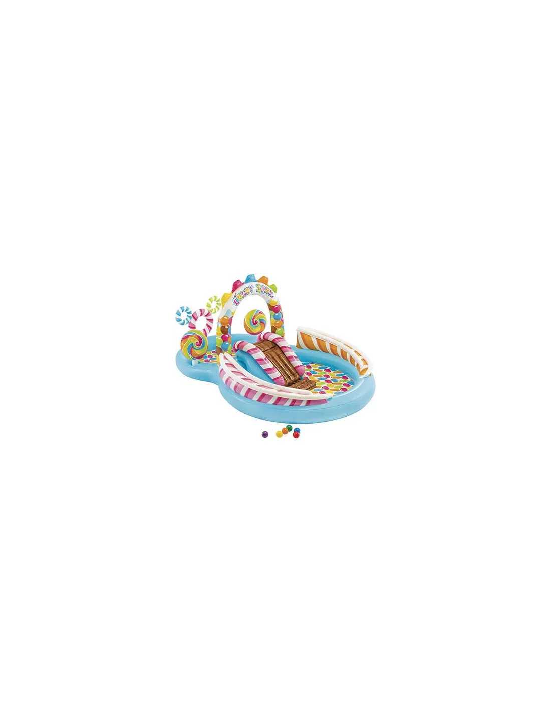 PLAYCENTER CANDY ZONE è un divertente parco acquatico gonfiabile composto da due piscine, uno scivolo, un arco con spruzzi d'acqua, 2 lollipop gonfiabili e 6 palline. Ideale per l'estate e per momenti di svago all'aperto!