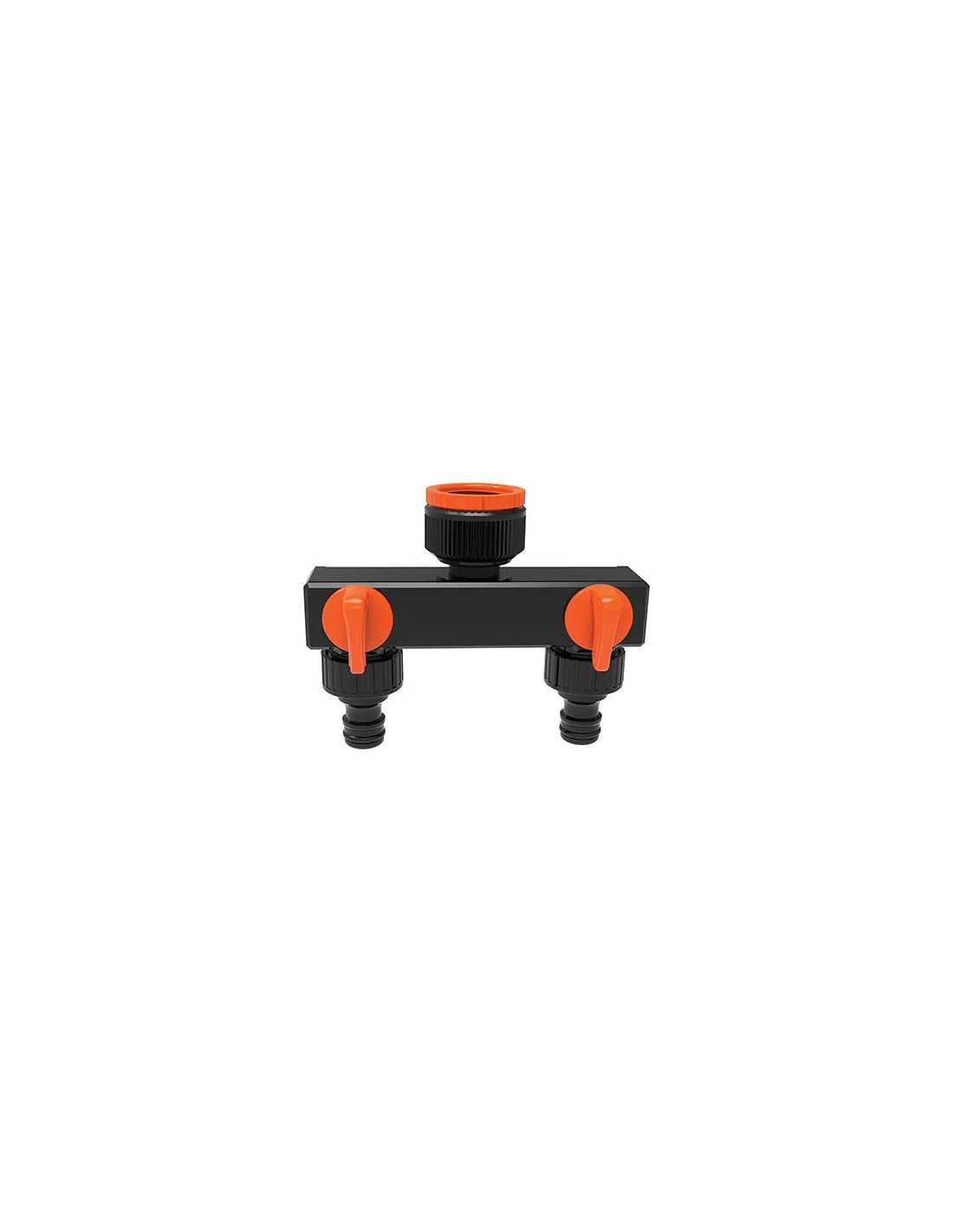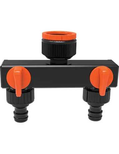 Presa a rubinetto + 2 innesti rapidi STARS è dotata di 2 rubinetti indipendenti con innesti rapido al portagomma. L'attacco al rubinetto con filettatura femmina e riduzione la rende versatile e pratica per molteplici utilizzi.