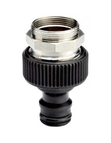 Presa a rubinetto ideale per bagno e cucina, con innesto rapido al portagomma. Realizzata con raccordo in ottone filettato 3/4” GAS con filettatura esterna ed interna.