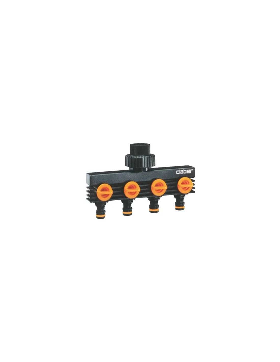 Prese a quattro vie Claber 8581 sono delle prese rubinetto che consentono di allacciare quattro linee ad un'unica presa d'acqua. Ogni linea è comandata in modo indipendente dal proprio rubinetto, che ha un filetto da 3/4".