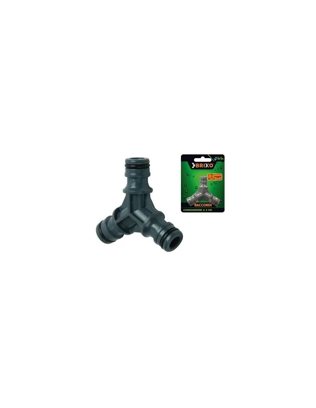 Raccordi Brixo Iris congiunzione 3 vie, ideali per sdoppiare la linea di irrigazione e distribuire l'acqua in due punti diversi. Facili da utilizzare grazie al sistema universale a scatto. Confezione pratica in blister.