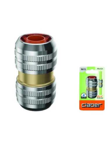 Raccordi riparatori Metal Jet Claber 9615 in ottone cromato per riparare un tubo danneggiato o collegare due rotoli di tubo di diametro diverso. Adatti per tubi Ø 3/4". Confezione blister.
