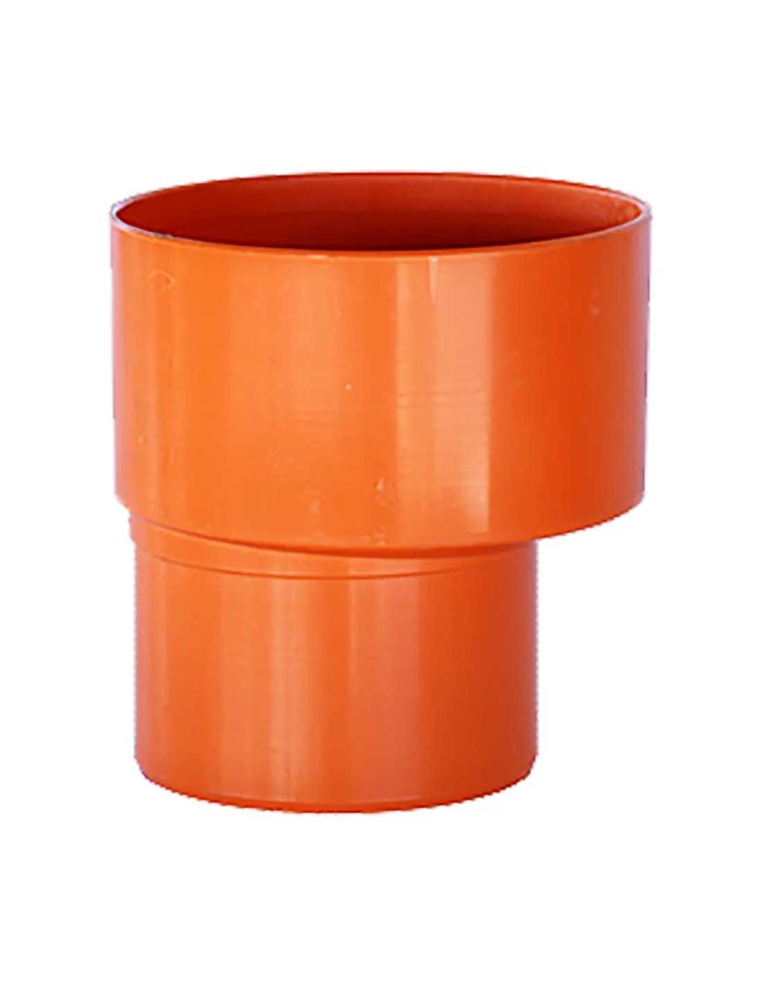 Riduzione eccentrica in PVC di colore arancio, ideale per ridurre il diametro di tubazioni con facilità.