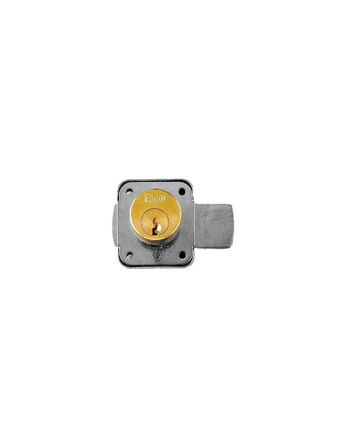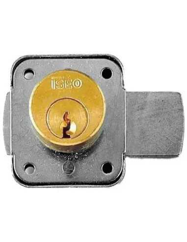 Serratura a cilindro per antine ISEO, ideale per cassetti e ante sinistre. Confezionata in scatola zincata, dimensioni compatte e distanza fori standard. Include 2 chiavi di sicurezza.