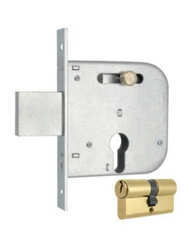 Serratura cancello infilare 138 MG con cilindro sagomato e 2 mandate. Dotata di scrocco con pomolino e catenaccio in acciaio. Include scatola da 95x96 mm e frontale in acciaio zincato da 20x145 mm. Inclusi 3 chiavi piatte.