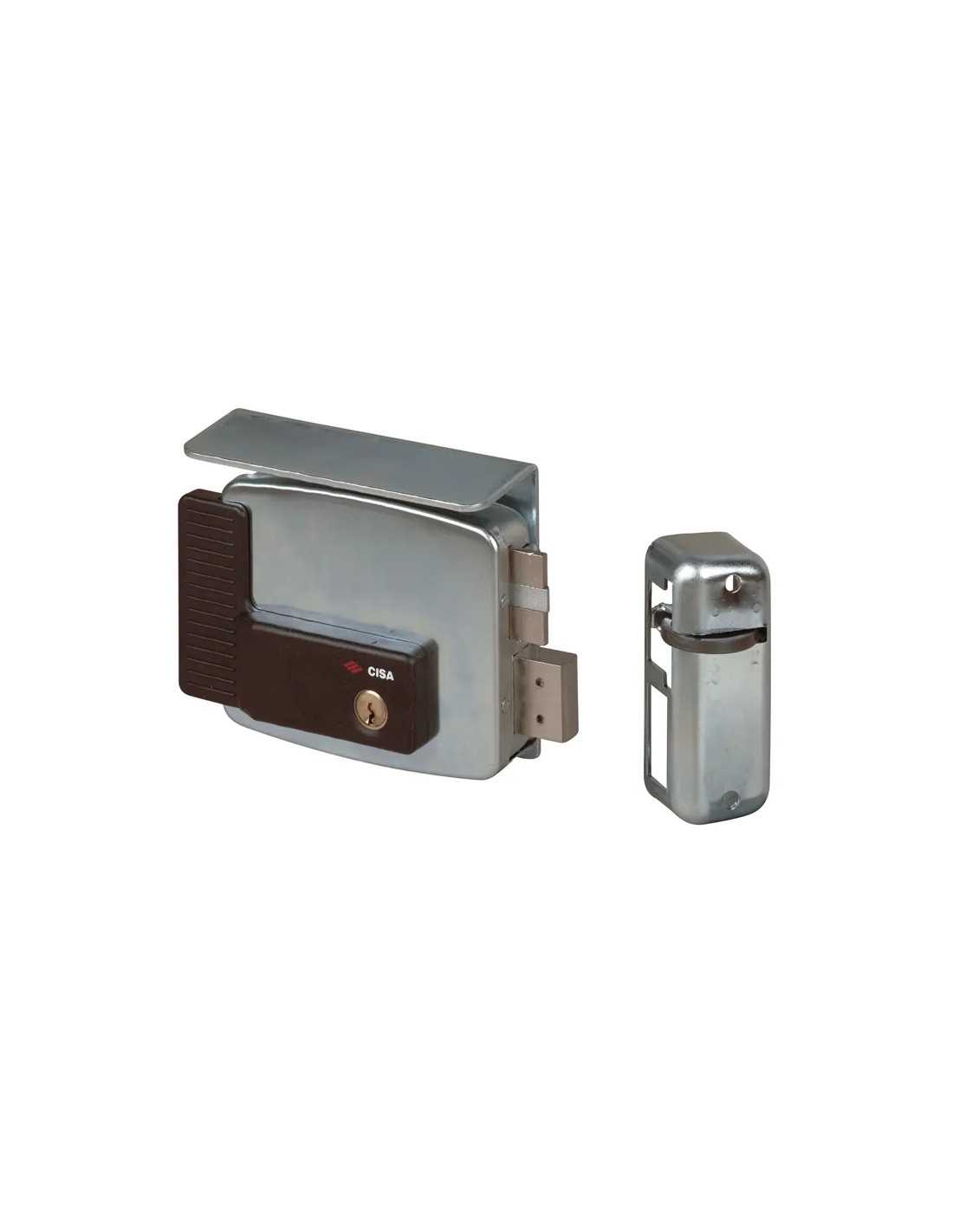 Serratura CISA 11761 50 SX Elettrica da applicare con tetto per cancelli in ferro. Dotata di cilindro interno, due mandate e scrocco autobloccante. Ideale per garantire sicurezza e comodità.