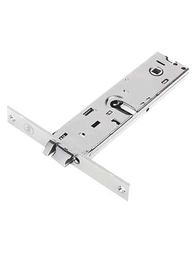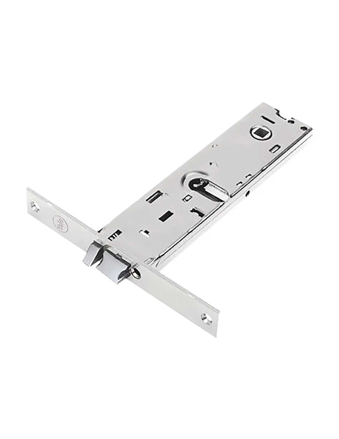 Serratura elettrica da fascia stretta, adatta per porte in alluminio. Realizzata in acciaio, con scrocco reversibile e foro ovale per cilindro. Vite di fissaggio inclusa, alimentazione a 12V.