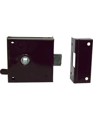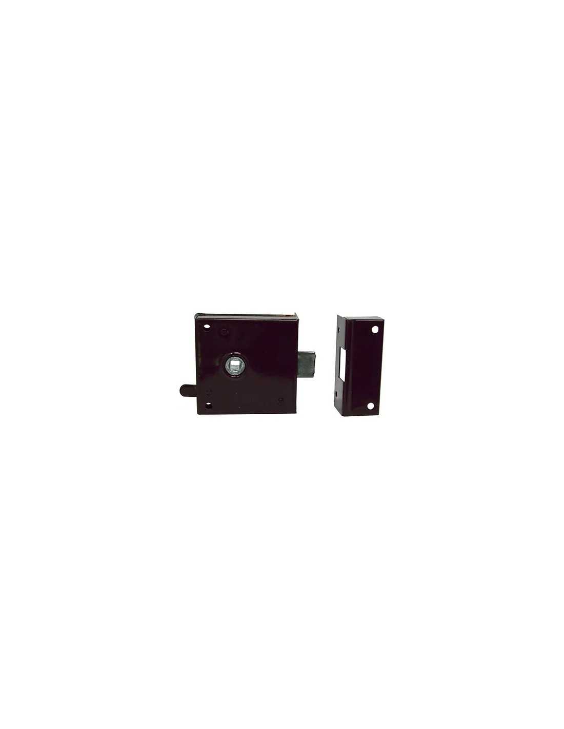 Serratura legno applicare 189 Bonaiti è una serratura a mappa con scrocco reversibile e bloccabile, adatta per porte in legno. Realizzata in acciaio verniciato marrone, presenta un quadro maniglia da 6 mm e un'altezza scatola di 70 mm. Completa di bocchetta inclusa nella confezione.