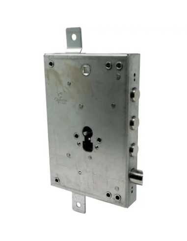 SERRATURA METALLO APPLICARE 50137 CIPIERRE è una serratura in metallo applicabile per cilindri sagomati, con scrocco reversibile azionabile da chiave o maniglia. Dotata di chiusura triplice con catenaccio a 3 pistoni e 2 mandate, sporgenza di 14mm e corsa di 29mm. Compatibile con cilindro Mottura 85571/37.