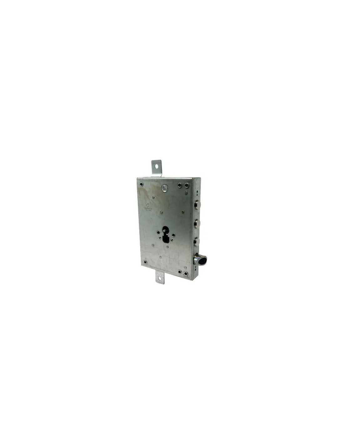 SERRATURA METALLO APPLICARE 50137REG CIPIERRE è una serratura in acciaio zincato con chiusura triplice e scrocco reversibile, regolabile lateralmente. Azionabile da chiave o maniglia, è compatibile con cilindri sagomati e offre sicurezza e affidabilità.