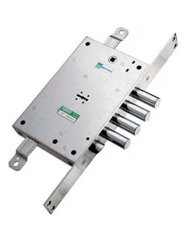 Questa serratura in metallo da infilare della MOTTURA è dotata di un meccanismo a doppia mappa che offre massima sicurezza. Il suo scrocco è azionabile sia dalla chiave che dalla maniglia, garantendo un facile utilizzo. La chiusura è triplice, con un catenaccio a pistoni e 4 mandate, per una protezione extra. La serratura ha una corsa di 40 mm e una predisposizione per il fissaggio delle aste, con una corsa di 20 mm. Il quadro della maniglia è di 8 mm, con un interasse di 85 mm. Il frontale presenta bordi quadri di dimensioni 35x356 mm, mentre la scatola misura 136x206 mm. Realizzata in acciaio zincato, questa serratura garantisce resistenza e durata nel tempo.