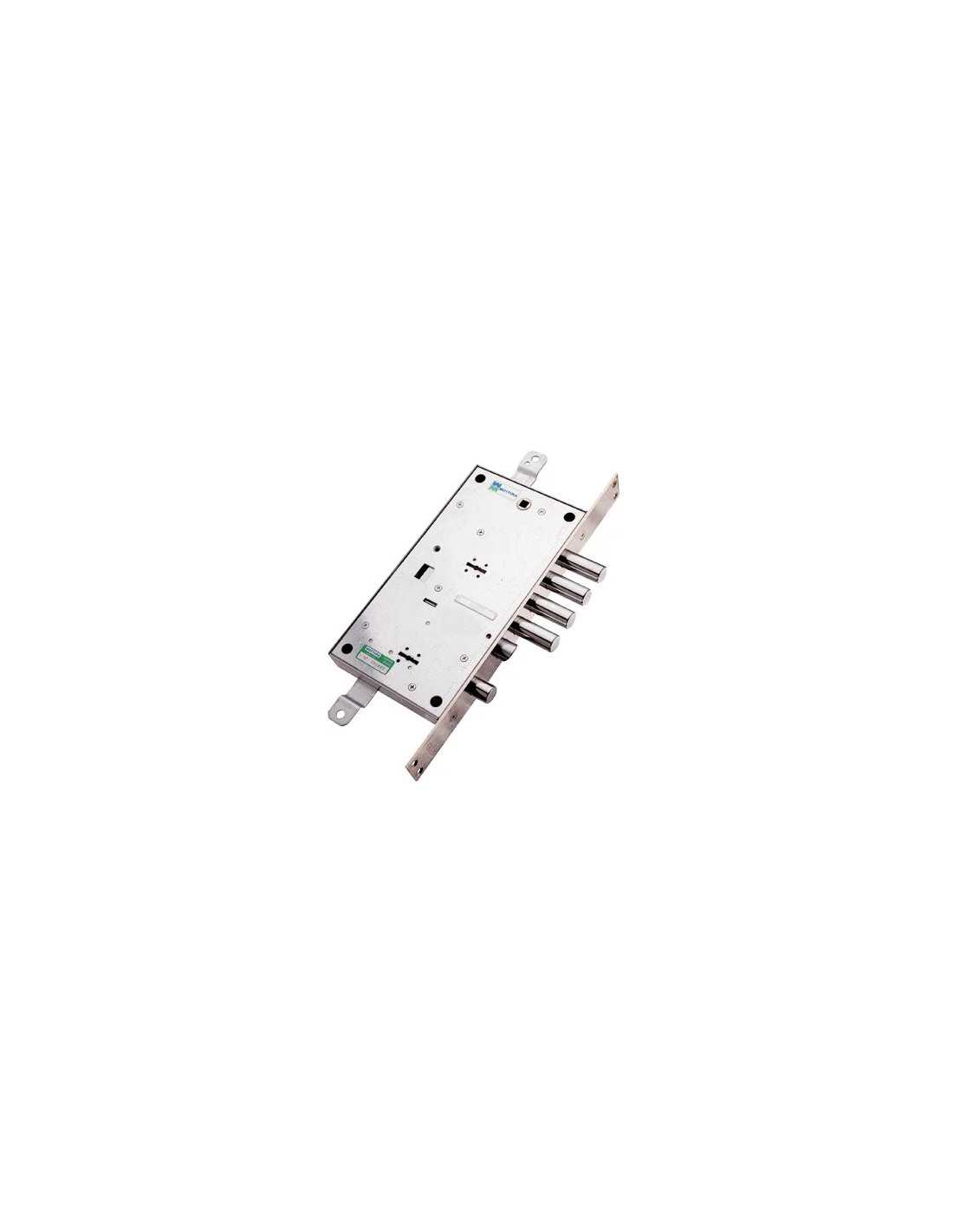 La serratura metallo infilare 54795 Mottura è un prodotto di alta qualità con un doppio sistema di chiusura a doppia mappa. Questa serratura offre una sicurezza extra grazie al suo scrocco azionabile da chiave o maniglia. La parte superiore della serratura attiva una chiusura triplice con catenaccio a 4 pistoni e 4 mandate, mentre la parte inferiore blocca la serratura superiore con un catenaccio a 1 pistone e 2 mandate.