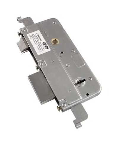 Serratura a doppia mappa con scrocco reversibile e chiusura triplice. Dotata di catenaccio a 2 mandate e predisposizione per aggancio aste. Quadro maniglia Mm. 8. Include 3 chiavi e viti di montaggio.