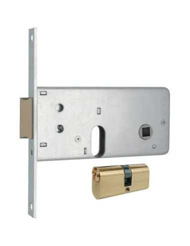 Serratura metallo infilare con cilindro ovale, 2 mandate e scrocco, catenaccio in ottone. Frontale a bordo quadro in acciaio zincato. Con 3 chiavi piatte in dotazione.