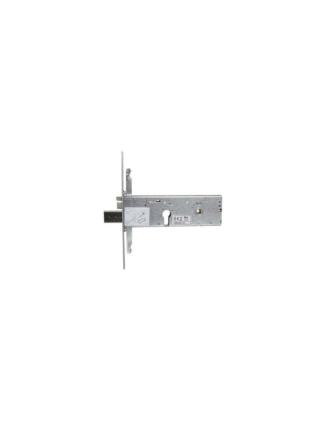 Serratura metallo infilare elettrica 96392 ISEO: ideale per cilindri sagomati, con chiusura triplice e frontale in acciaio zincato. Completa di accessori per l'installazione.