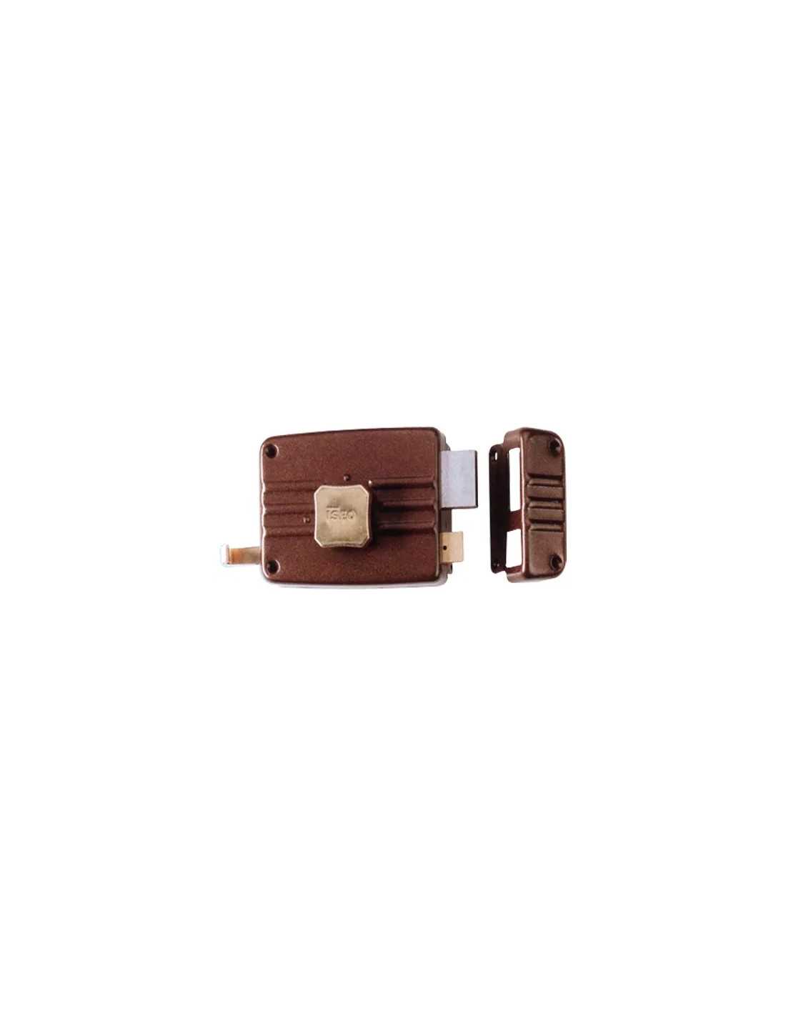 Serrature da applicare Iseo 401, realizzate in acciaio verniciato e adatte per infissi in legno. Dotate di 2 mandate e scrocco, con cilindro esterno staccato e pomolo interno in ottone. Mano destra. Confezione Master da 10 pezzi.