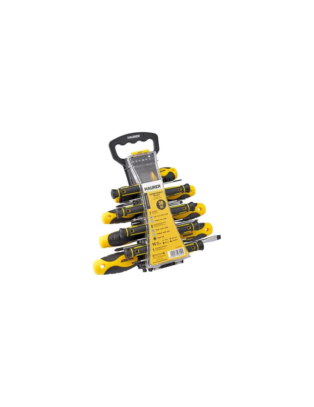 Scopri il set di cacciaviti e bits MAURER Serie 30PZ, un kit indispensabile per qualsiasi lavoro di precisione. Con un design moderno e funzionale, questo assortimento di 30 pezzi è progettato per affrontare una varietà di compiti con facilità e precisione.