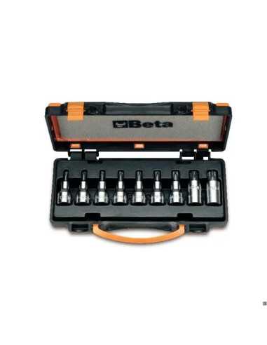 Cassette Beta Utensili 9 pezzi 1/2 TX 920 è un set completo di chiavi a bussola Torx adatte a una vasta gamma di applicazioni. Le chiavi sono organizzate in una pratica custodia per un facile trasporto e conservazione.