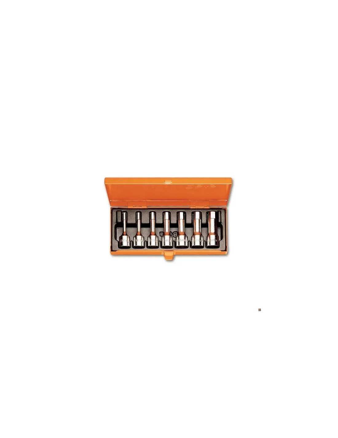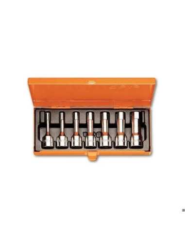 Cassette bussole a gir esagonale da 7 pezzi che garantiscono versatilità e precisione nelle operazioni di serraggio e svitaggio. Ideali per professionisti e appassionati del fai-da-te.