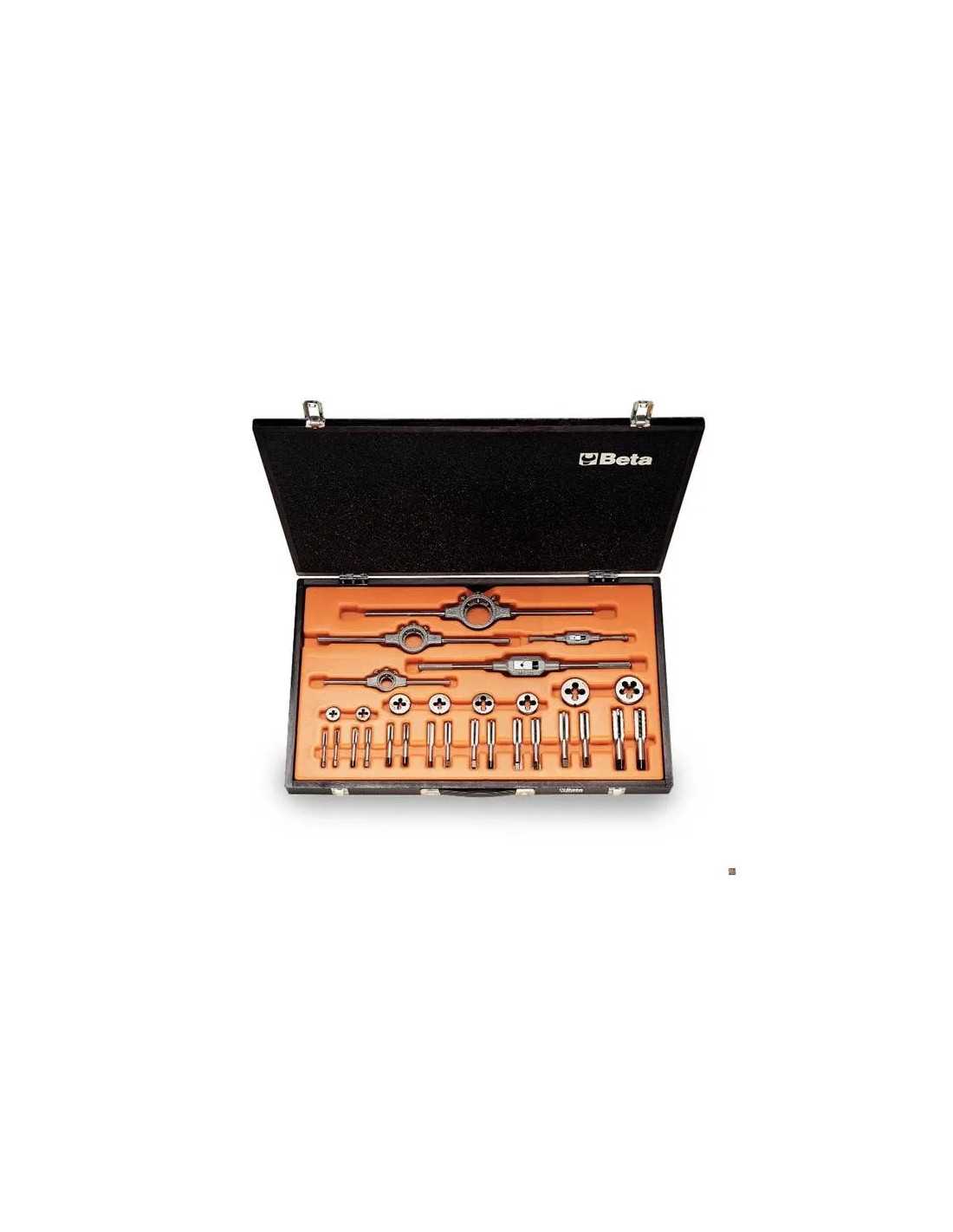 Introducing the CASSETTE MASCHI+FILIERE 29PZ UNF ASFC29 by Beta Utensili, a must-have set for any professional or DIY enthusiast. This comprehensive set includes a wide range of taps and dies in various sizes to cover all your threading needs.