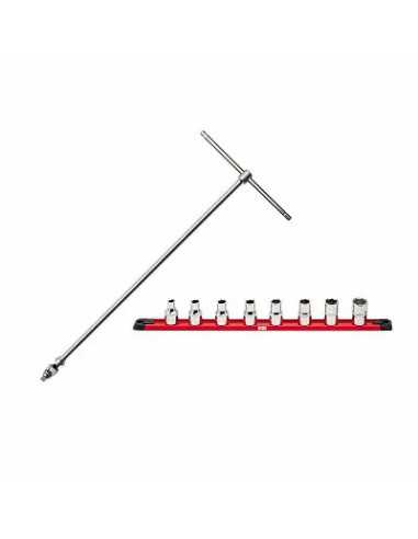 Chiave a T con 8 bussole per lavori di serraggio e svitaggio veloci ed efficienti. Ideale per varie applicazioni grazie alla versatilità delle bussole incluse. Realizzata con materiali di alta qualità per garantire resistenza e durata nel tempo.