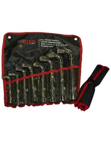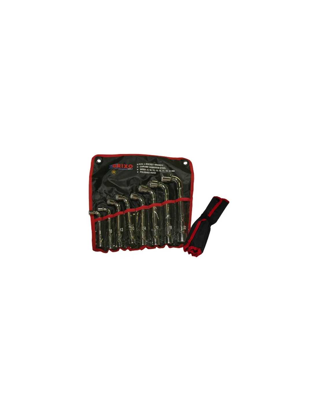 Chiavi a pipa Brixo della serie CV con custodia contenente 8 pezzi di varie dimensioni. Ideali per lavori di meccanica e fai da te.