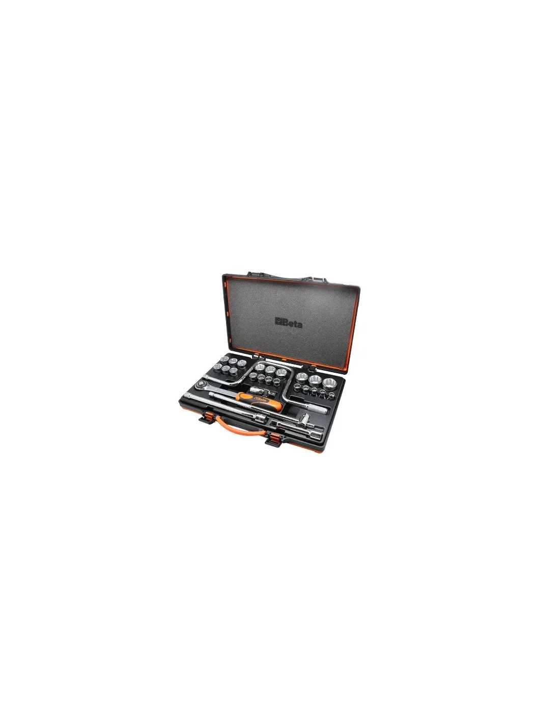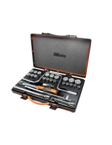 Chiavi a bussola in serie Beta 920B C21, assortimento professionale contenente bussole poligonali, prolunghe, snodo, quadro maschio, manovella e cricchetto.