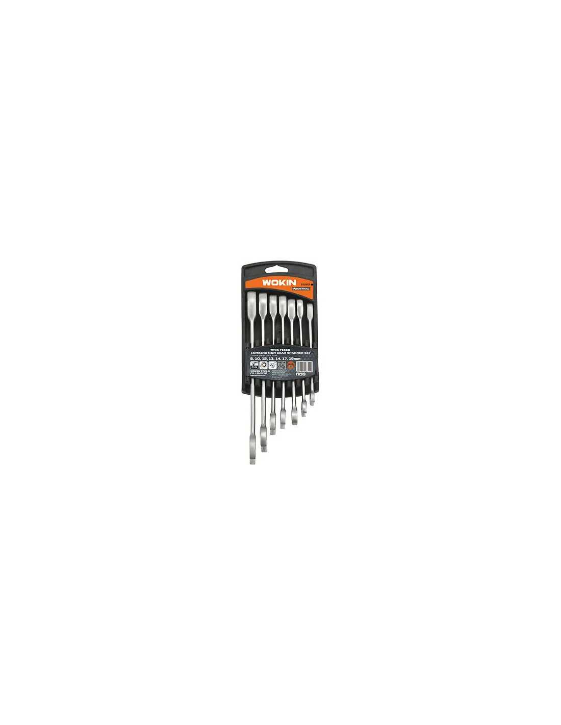 Chiavi combinate a cricco fisso serie 151807 WOKIN sono realizzate in acciaio al cromo vanadio con finitura satinata. Questo set include le misure Mm. 8, 10, 12, 13, 14, 17 e 19, e sono dotate di supporto compatto in plastica resistente ed appendibile.