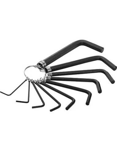 Le chiavi esagonali su anello WOKIN sono realizzate in resistente acciaio brunito, ideali per qualsiasi tipo di lavoro. Il set include una varietà di misure, dal più piccolo mm. 1,5 al più grande mm. 10, coprendo così tutte le esigenze. Grazie al pratico anello, le chiavi sono facili da tenere e organizzare in modo ordinato. Il blister protettivo garantisce che le chiavi siano sempre al sicuro e pronte all'uso.