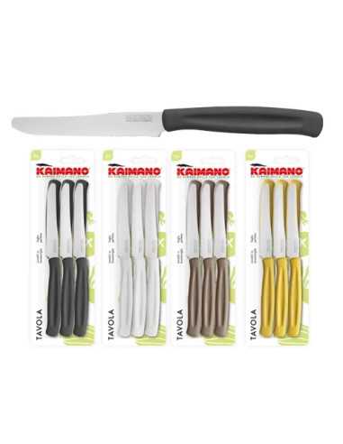 Coltelli da tavola Kaimano Dinamik con lama in acciaio inox temperato e lucidato a specchio. Il manico ultraresistente in polipropilene sovra-iniettato è ergonomico e dotato di paradito. Confezione da 6 pezzi.