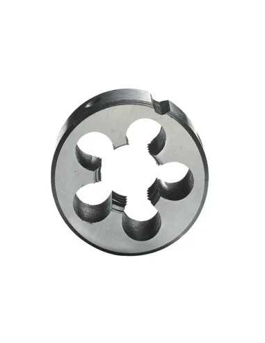 Filiere tonde in acciaio cromo vanadio con filettatura metrica ISO -DIN 13, ideali per lavori di filettatura precisa e resistente.