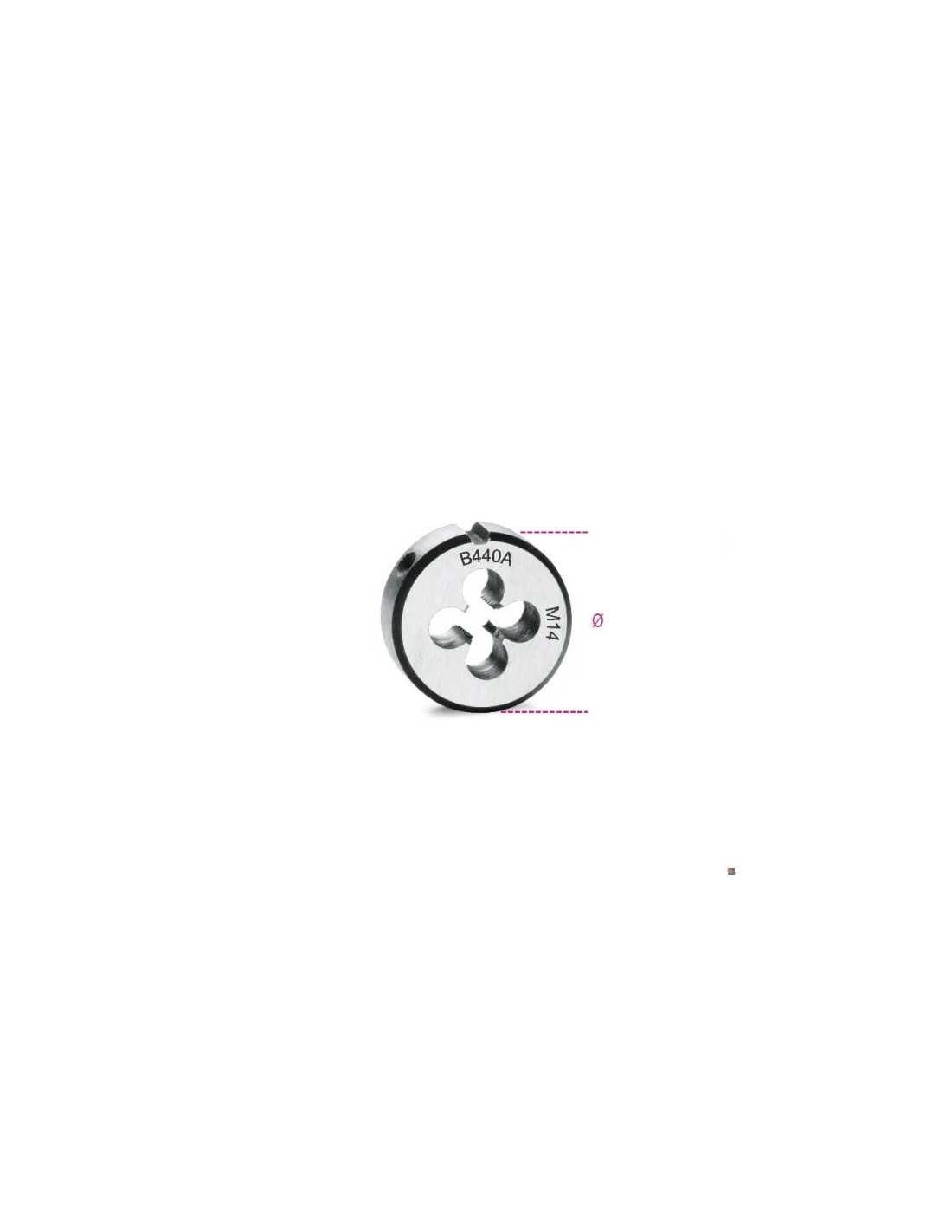 Le filiere tonde passo grosso EST38,1 A/14 del marchio Beta Utensili sono l'ideale per lavori di filettatura di alta precisione. Realizzate con materiali di alta qualità, queste filiere garantiscono una durata eccezionale nel tempo.