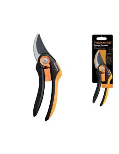 Forbici Smartfit Bypass P541 Fiskars, ideali per tagliare legno fresco fino a Ø 24 mm. La struttura in FiberComp (Nylon rinforzato con fibra di vetro) garantisce resistenza e durabilità. Le lame in acciaio al carbonio temprato sono resistenti alla corrosione e rivestite in PTFE (Politetrafluoroetilene) per un taglio preciso e fluido. I manici SoftGrip assicurano una presa comoda e sicura durante l'utilizzo. Lunghezza 20 cm.
