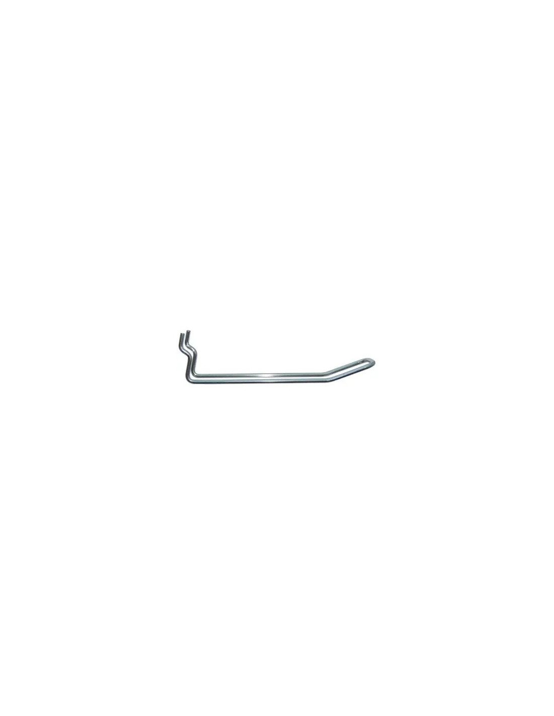 Gancio doppio in acciaio ideale per pannelli espositivi, realizzato in acciaio spesso 3,8mm con fori distanziati di 25mm. Un accessorio robusto e pratico per organizzare e esporre prodotti in modo efficiente.