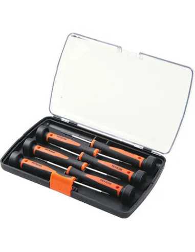 Questo set include sei pezzi diversi, ognuno progettato per soddisfare le esigenze specifiche dell'orologiaio. Con tagli di diverse dimensioni, tra cui 2x50, 2,5x50 e 3,0x50, insieme a teste a croce di varie misure come PH 000x50, 00x50 e 0x50, il set è completo e versatile.