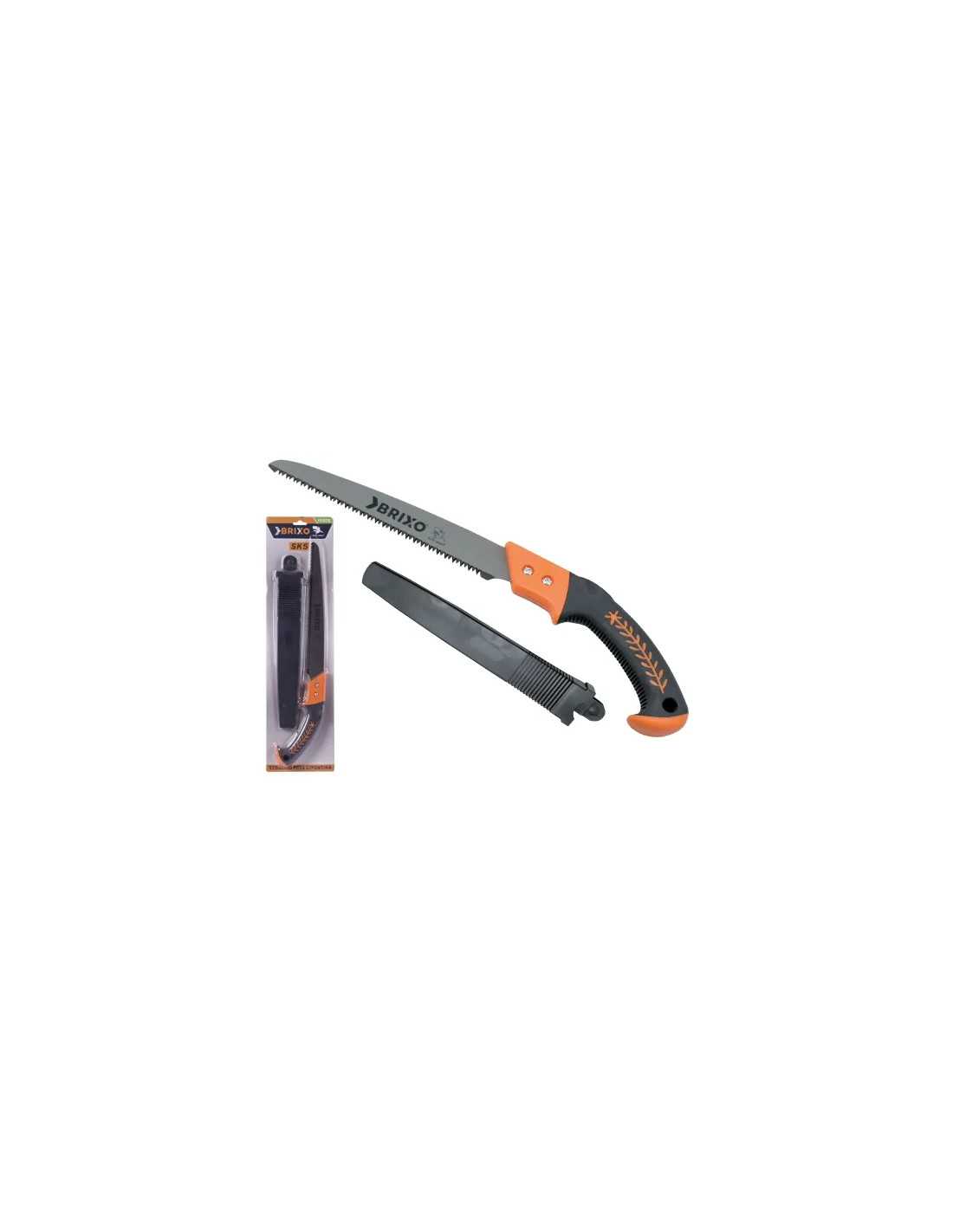 Segacci pota Brixo con lama in acciaio SK5 temperato ad impulsi a triplo profilo e manico antiscivolo. Completo di custodia a fondina per un comodo trasporto e conservazione.