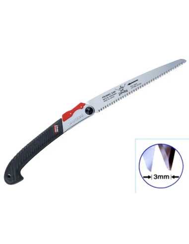 Segacci Samurai lama retta De Luxe MP240MH è un segaccio a serramanico ideale per lavori di potatura, giardinaggio e taglio di legname secco. La lama da 24 cm ha un passo di 3 mm a sezione differenziata e il manico ergonomico permette un utilizzo comodo e preciso. La lama può essere bloccata in 2 posizioni per facilitare il taglio su banco da lavoro o a braccio disteso. Include una custodia protettiva per una maggiore durata nel tempo.