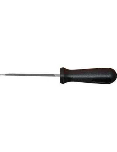 Lima triangolare con bordi vivi extrasottili, ideale per affilare seghe a mano. Dotata di impugnatura sintetica per una presa salda e comoda durante l'uso.