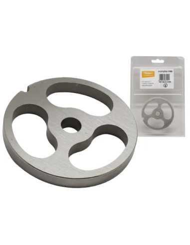 Piastre per tritacarne a losanga Reber. Realizzate in resistente acciaio al carbonio con fori a losanga per una macinatura efficace. Ideali per preparare carne macinata fresca in casa. Confezionate in pratico blister per una conservazione sicura.