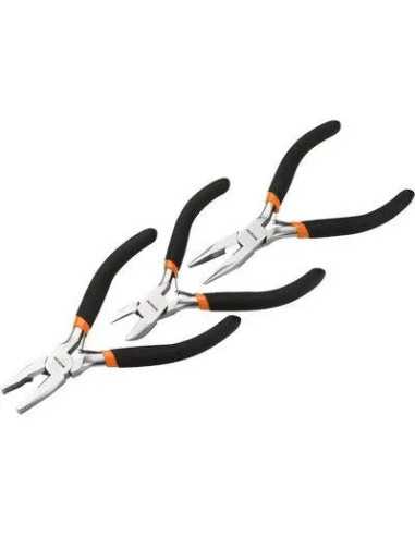 Il set include tre diverse pinze: una pinza universale, una pinza da taglio diagonale e una pinza a becchi lunghi, tutte lunghe 115 mm. Queste pinze sono ideali per affrontare una vasta gamma di lavori, dall'elettronica alla meccanica, dalla lavorazione del legno alla modellistica.