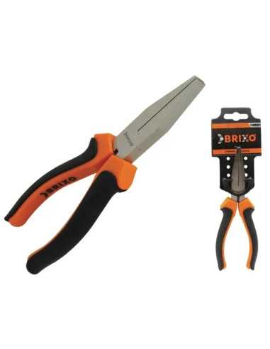 Pinze Brixo becchi piatti retti realizzate in acciaio forgiato di alta qualità, con testa piatta e finitura fosfatata. I manici sono dotati di impugnatura isolante in bicomponente per una presa salda e confortevole durante l'uso. Ideali per una vasta gamma di lavori di precisione.