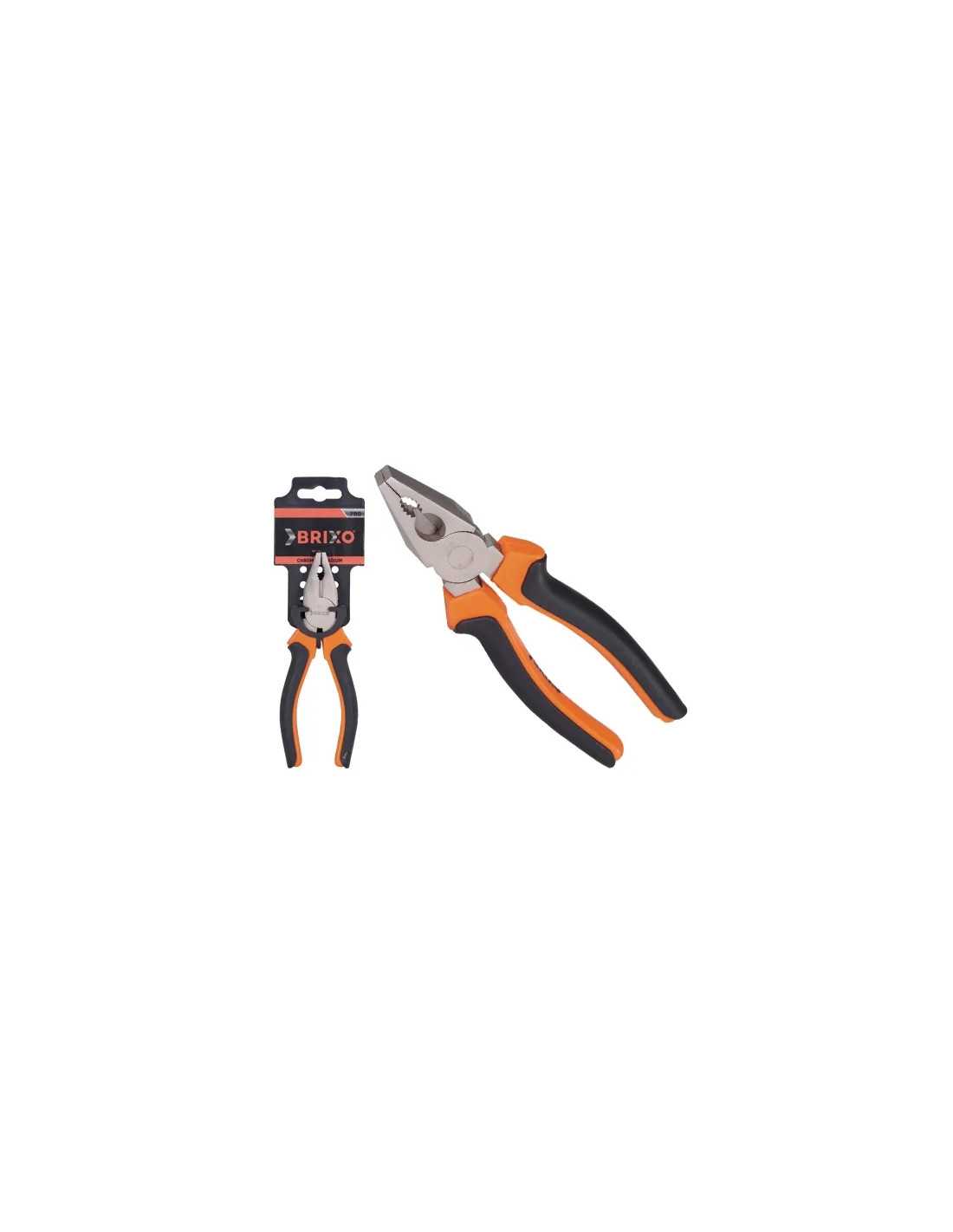 Pinze universali Brixo realizzate in acciaio forgiato di alta qualità, con testa piatta rifinita fosfatata e manici soft-grip con impugnatura isolante in bicomponente.