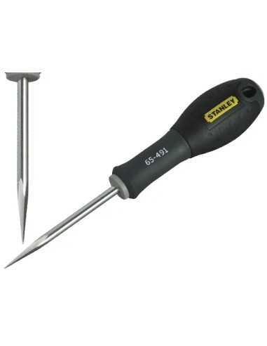 Punteruoli Stanley Fatmax è dotato di una grande impugnatura morbida antiscivolo e zigrinata saldata alla lama, rendendolo comodo da utilizzare. La lama appuntita in acciaio cromato lo rende ideale per forare il legno prima di inserire la vite.