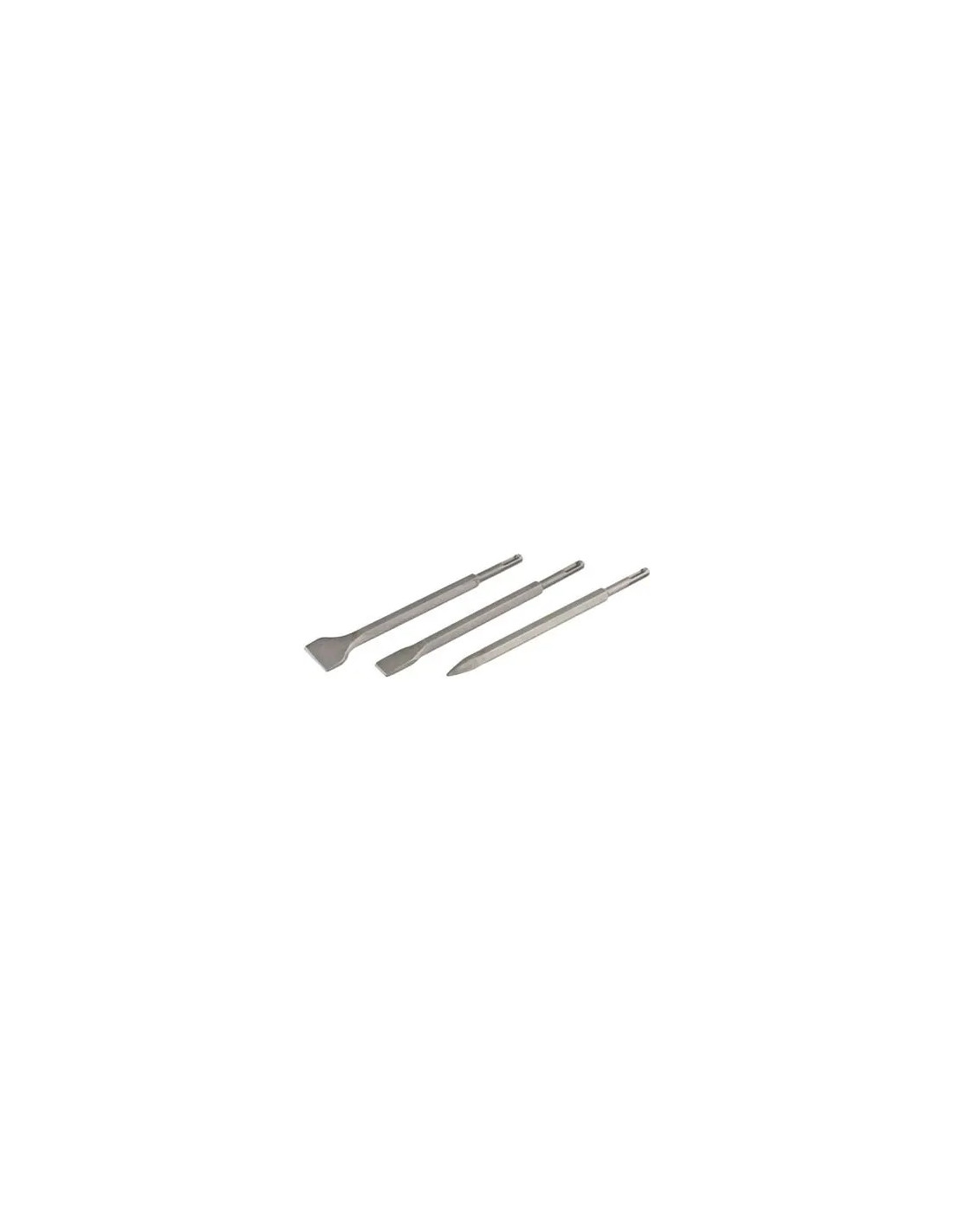 Kit completo di scalpelli da 250 mm con attacco SDS-Plus, ideale per lavori di precisione. Include un scalpello a punta, uno a taglio largo da 40 mm e uno a taglio stretto da 20 mm.