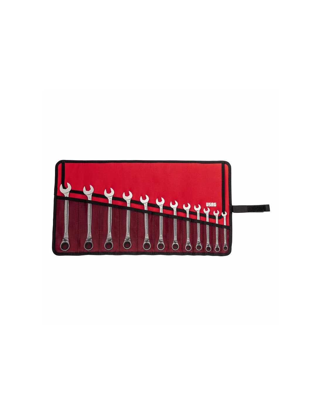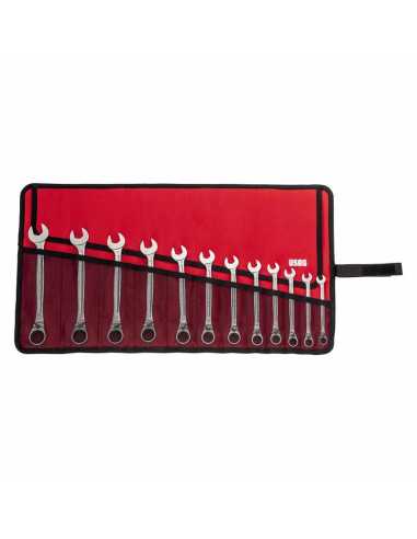 Introducing the innovative and versatile 285 KA/B12 SET OF RATCHET COMBINATION WRENCHES by USAG Original. This set of 12 keys combines the convenience of a ratchet mechanism with the reliability of a traditional combination wrench, making it a must-have for any professional or DIY enthusiast.