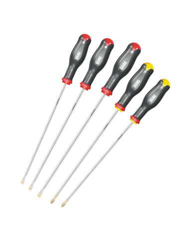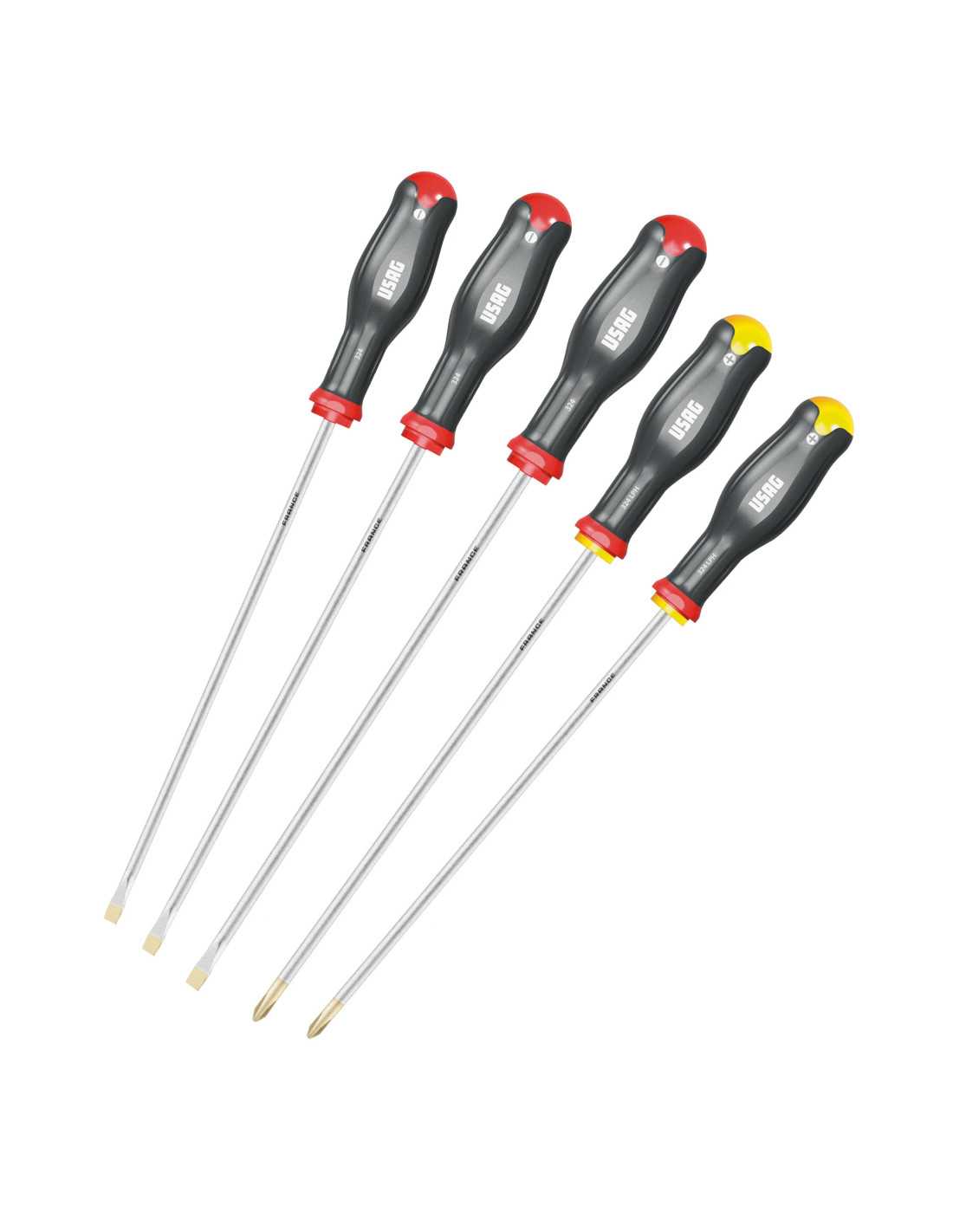 SET OF 5 SCREWDRIVES by USAG Original, perfect for all your screwdriving needs. This set includes 5 long screwdrivers for added reach and versatility.